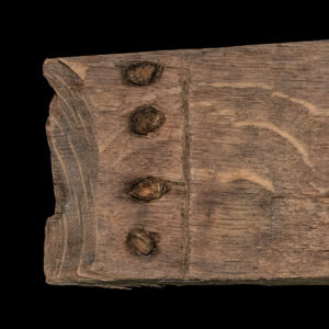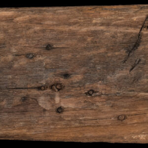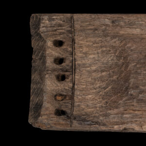 A number of the staves contain holes which have been pegged with small wooden pegs. These holes may have been sampling holes to test for spoilage, or they may have been used to siphon material out of the cask, perhaps an indication of pilfering.